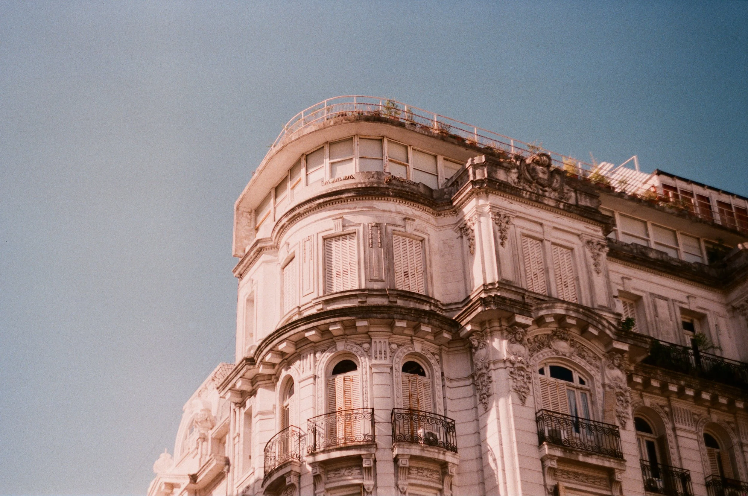 Je photographie seulement pour le moment avec mon vieil appareil argentique de 1965 : le Zenit-E. Ma première pellicule en Argentine ? La FujiColor 200. J’aime beaucoup cette teinte rosée. J’ai pris soin d’acheter avant de partir d’autres pellicules 200, notamment des Kentmere Noir et Blanc et une Gold. Je pense avoir misé sur la bonne sensibilité ISO au vu de cette météo très favorable : 25 degrés, soleil et ciel bleu tous les jours avec en prime une lumière très intéressante. C’est encore l’été ici.